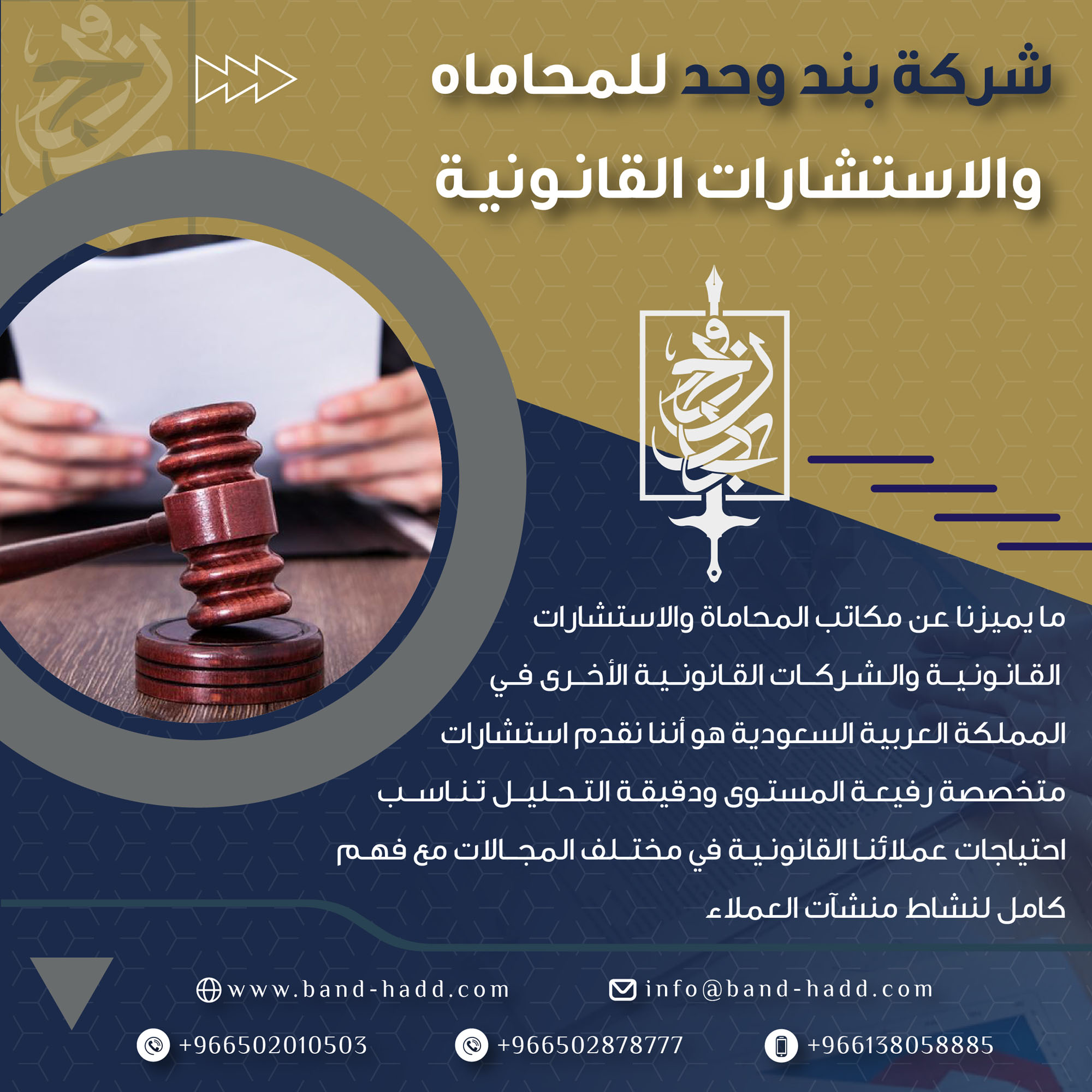 شركة بند وحد هي شركة القانونية للإستشارات تدار عن طريق نخبة مميزة من المستشارين المتخصصين في المجال القانوني وتتميز شركتنا بأنها تواكب تطورات العصر في ظل احتياج الفرد والمجتمع إلى معرفة الحقوق والإلتزامات والواجبات التي لهم وعليهم وتجاه أمر ما أو مشروع ما مقدم عليه وذلك بكل ( دقة وإتقان )