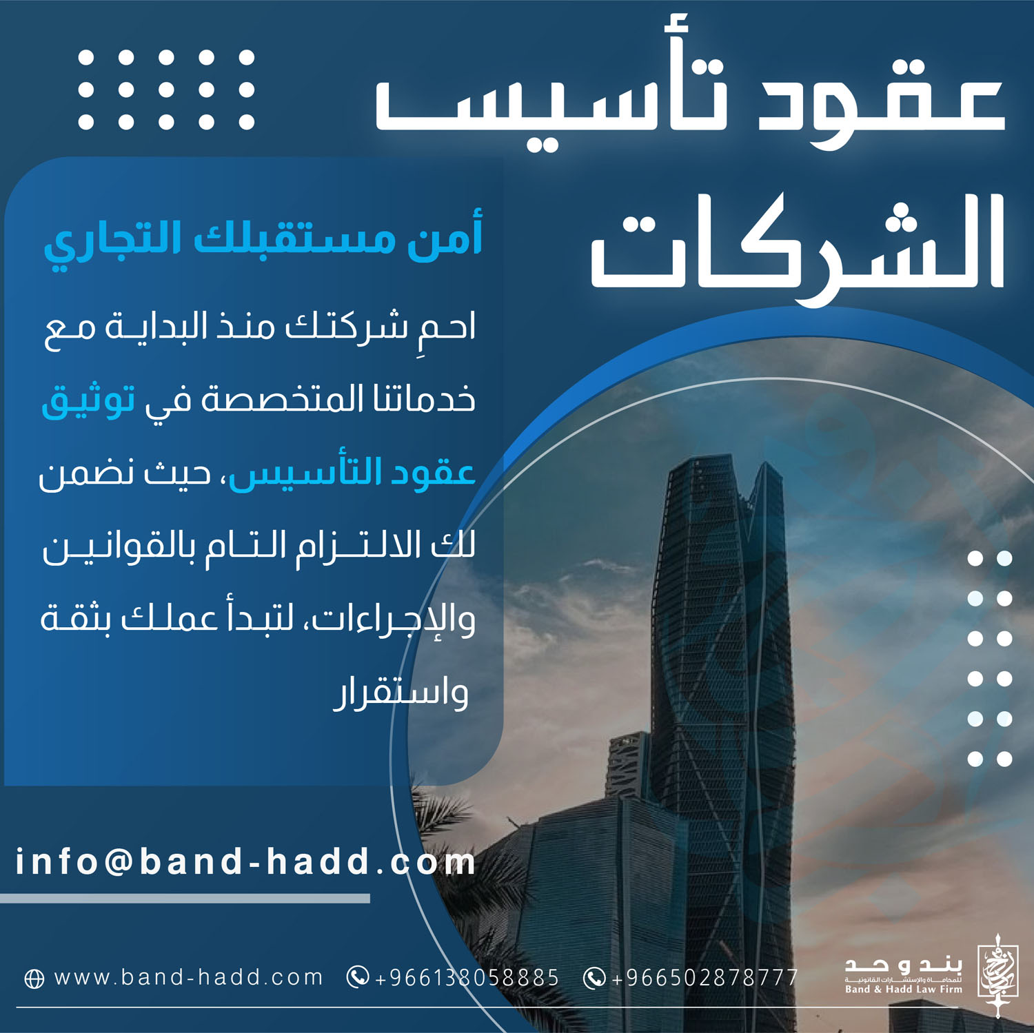 تُقدّم شركة بند وحد للمحاماة خدمات متميزة في توثيق عقود تأسيس الشركات بالرياض، حيث نحرص على توفير حلول قانونية متكاملة تضمن تأسيس شركتك وفقًا لأعلى معايير الامتثال للقوانين السعودية. فريقنا من المحامين المتخصصين يمتلك الخبرة اللازمة لصياغة ومراجعة عقود التأسيس بما يتناسب مع متطلباتك التجارية، مع الالتزام بتقديم خدمات سريعة وفعالة من خلال الاستفادة من التكنولوجيا الحديثة في تقديم الطلبات أونلاين. سواء كنت تسعى لتأسيس شركة صغيرة أو مشروع استثماري كبير، يمكن لشركة بند وحد أن تضمن لك سير عملية التوثيق بسلاسة ونجاح.