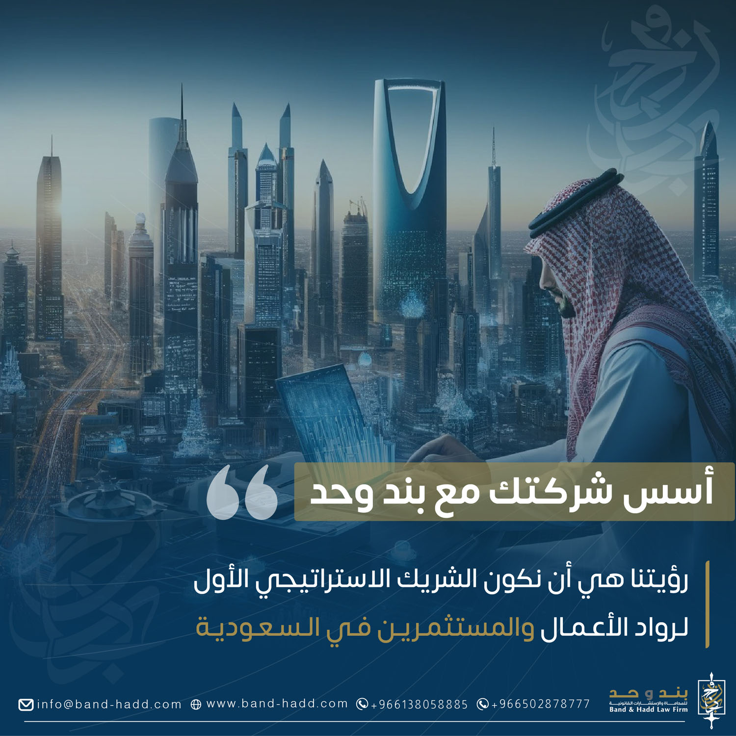 شركة بند وحد للمحاماة هي شركة متخصصة في تأسيس الشركات بالسعودية، وتعتبر واحدة من أفضل شركات المحاماة في السعودية. بفضل فريقها من المحامين المتخصصين في تأسيس الشركات، تقدم الشركة خدمات شاملة تشمل كافة الإجراءات القانونية والإدارية اللازمة لتأسيس شركتك بنجاح. سواء كنت تبحث عن محامي تأسيس شركات في الرياض أو في أي منطقة أخرى في المملكة، فإن شركة بند وحد للمحاماة توفر لك الخبرة والمعرفة القانونية لضمان تسجيل شركتك وفقاً لأحدث القوانين واللوائح.